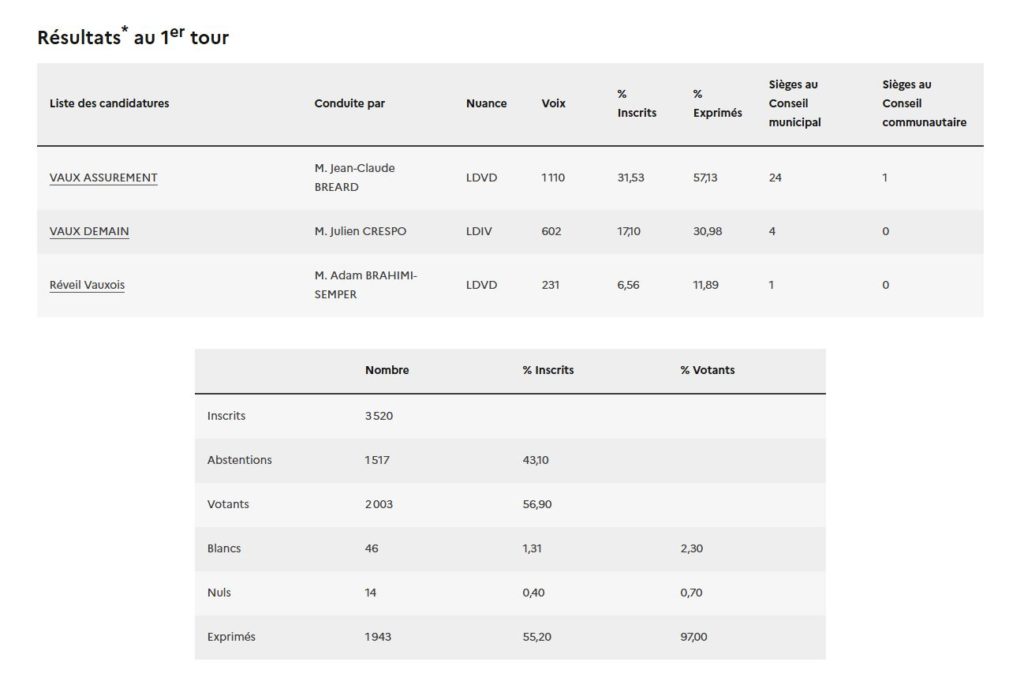Le premier tour des élections municipales s’est tenu dimanche 15 mars 2026 à Vaux-sur-Seine. À l’issue du scrutin, la liste conduite par le maire sortant a obtenu plus de 57 % des suffrages exprimés, permettant son élection dès le premier tour