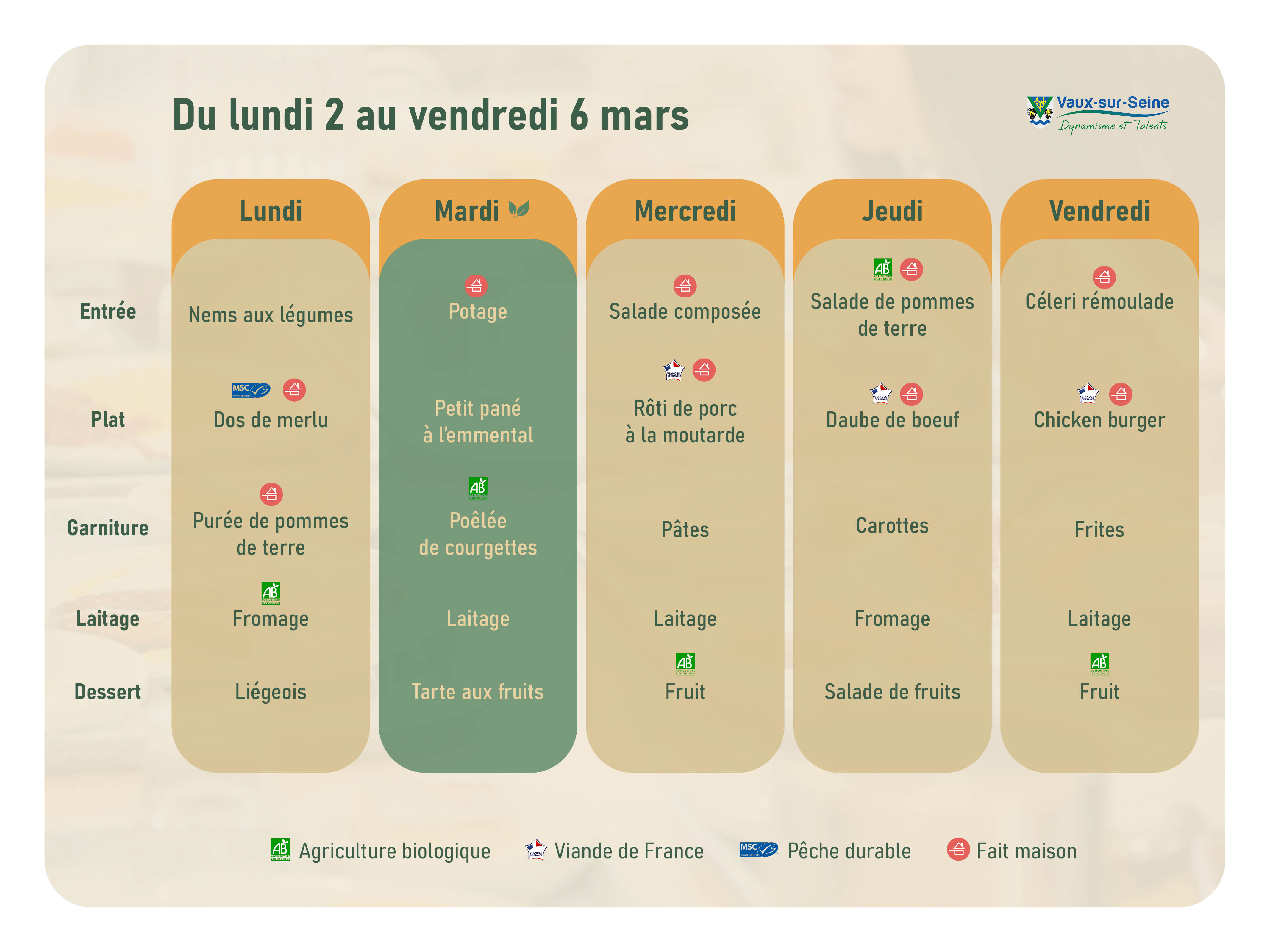 Menus restauration